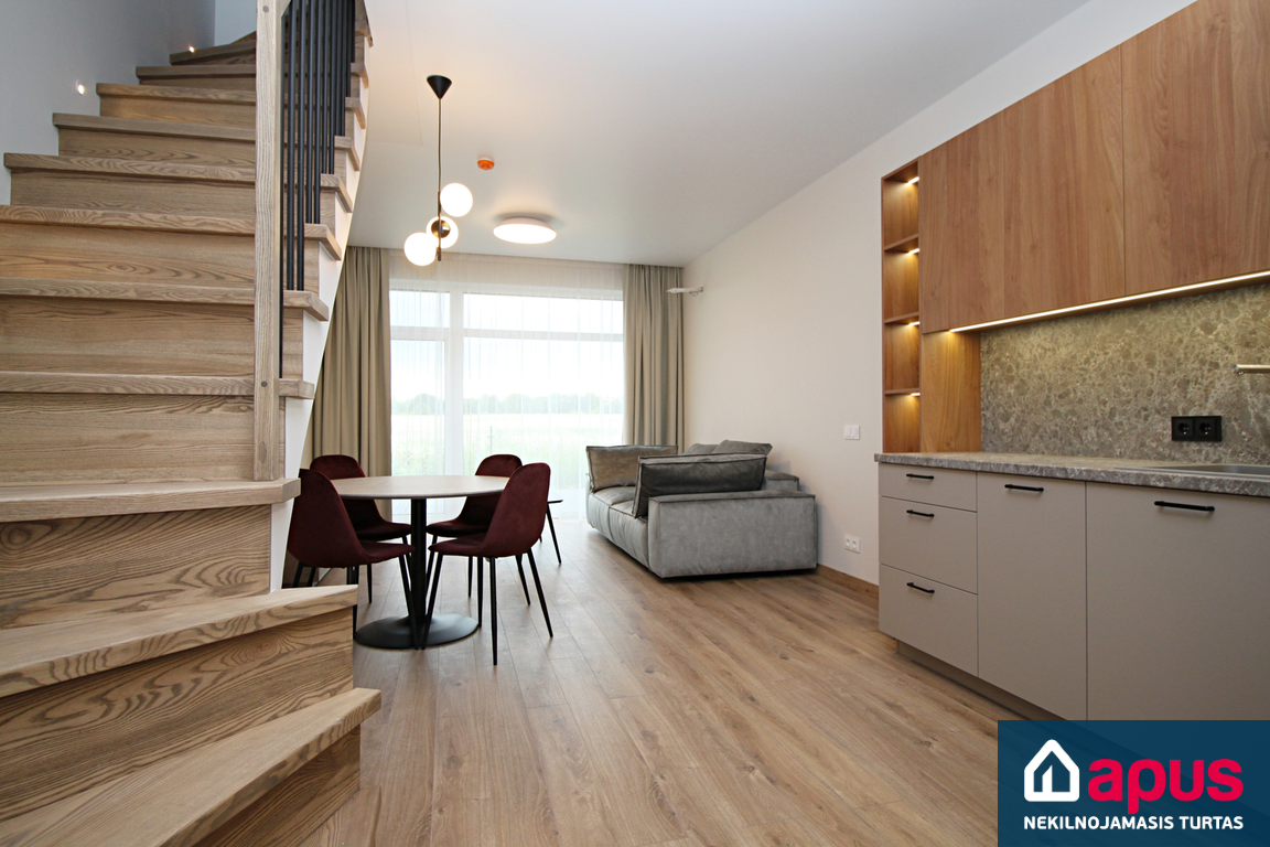 KIEKVIENAS KOTEDŽAS turi nuosavą kiemą su terasa, atskirą įėjimą ir vietą automobiliui. Atskiri įėjimai suteikia daugiau privatumo, o nuosavas kiemas leidžia mėgautis puikiu laiku su šeima ir draugais. Kotedžų kompleksas įsikuręs uždaroje jaukioje gyvenvietėje, kurioje vyrauja minimalistinė, skandinaviško tipo architektūra bei mažaaukštė gyvenamoji statyba. Jaukiose kvartalo prieigose rasite žaliąsias zonas, vaikų žaidimų aikšteles, takus jaukiems pasivaikščiojimams gryname ore bei daug vietos automobiliams. Rajono gyventojai džiaugiasi puikiai išplėtota infrastriktūra: šaligatviais, asfaltuotomis gatvėmis, gatvių apšvietimu, visuomeniniu transportu, netoliese įsikūrusiais prekybos centrais MAXIMA, LIDL ir IKI.