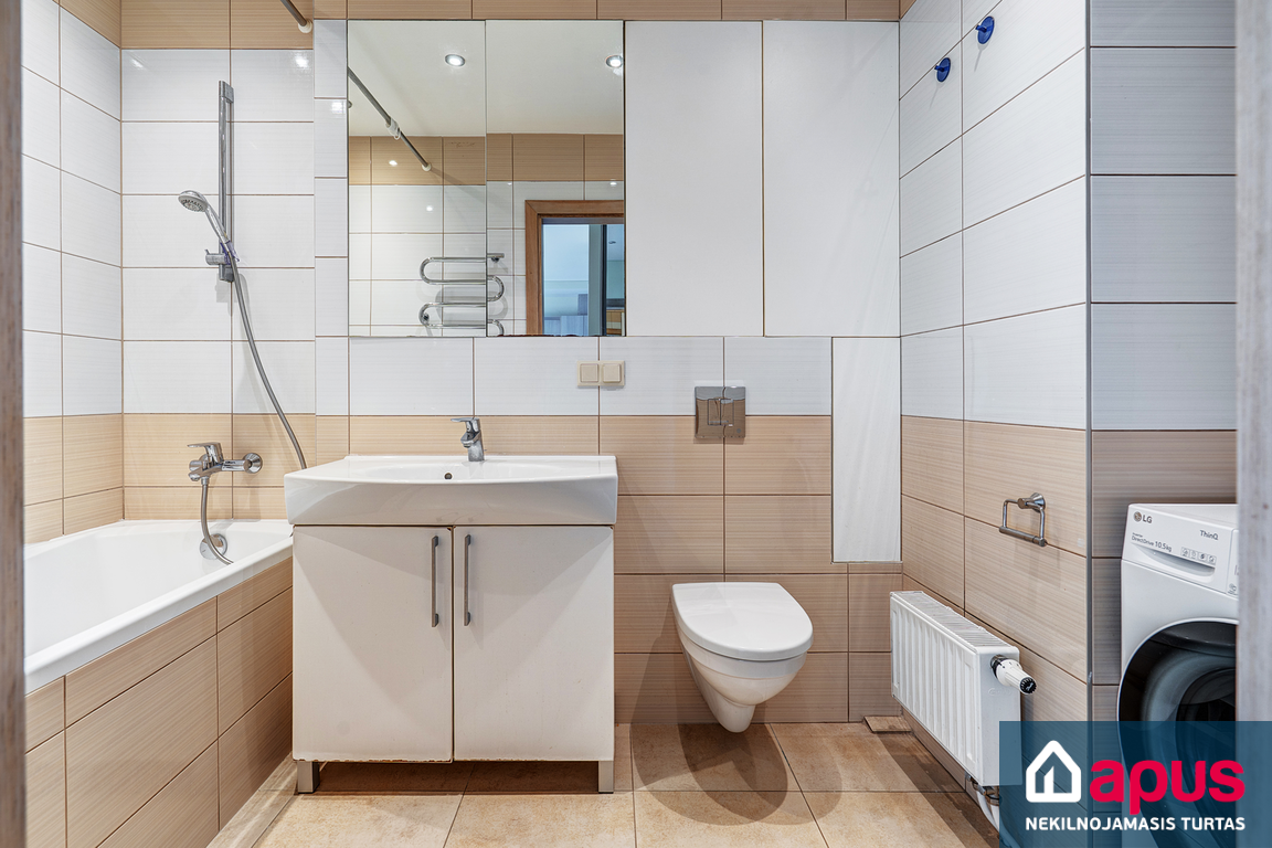 - tualetas ir vonia, spinta, dušas, vonia, el.gyvatukas, šildomos grindys;