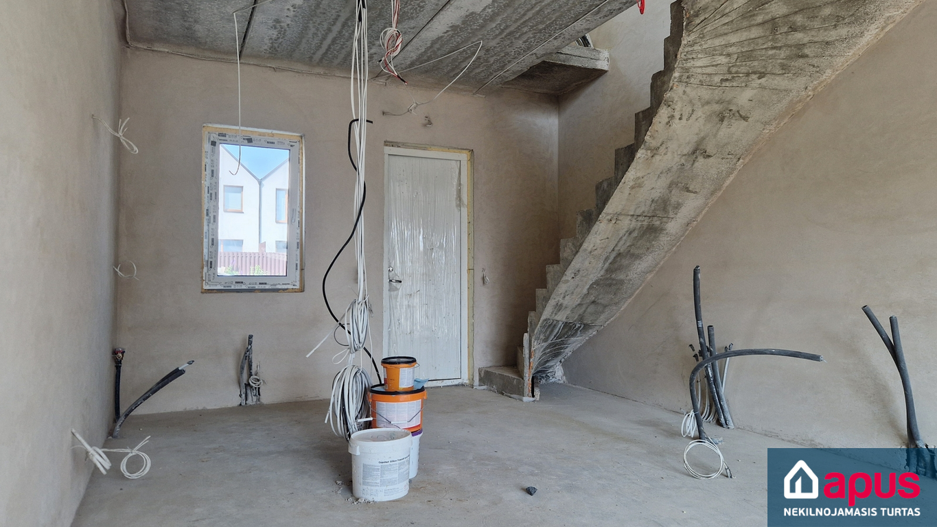 • 2 aukštai, 3 kambariai (2 miegamieji), 2 san. mazgai.