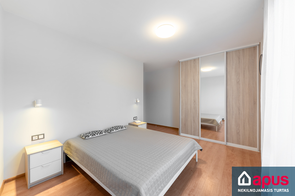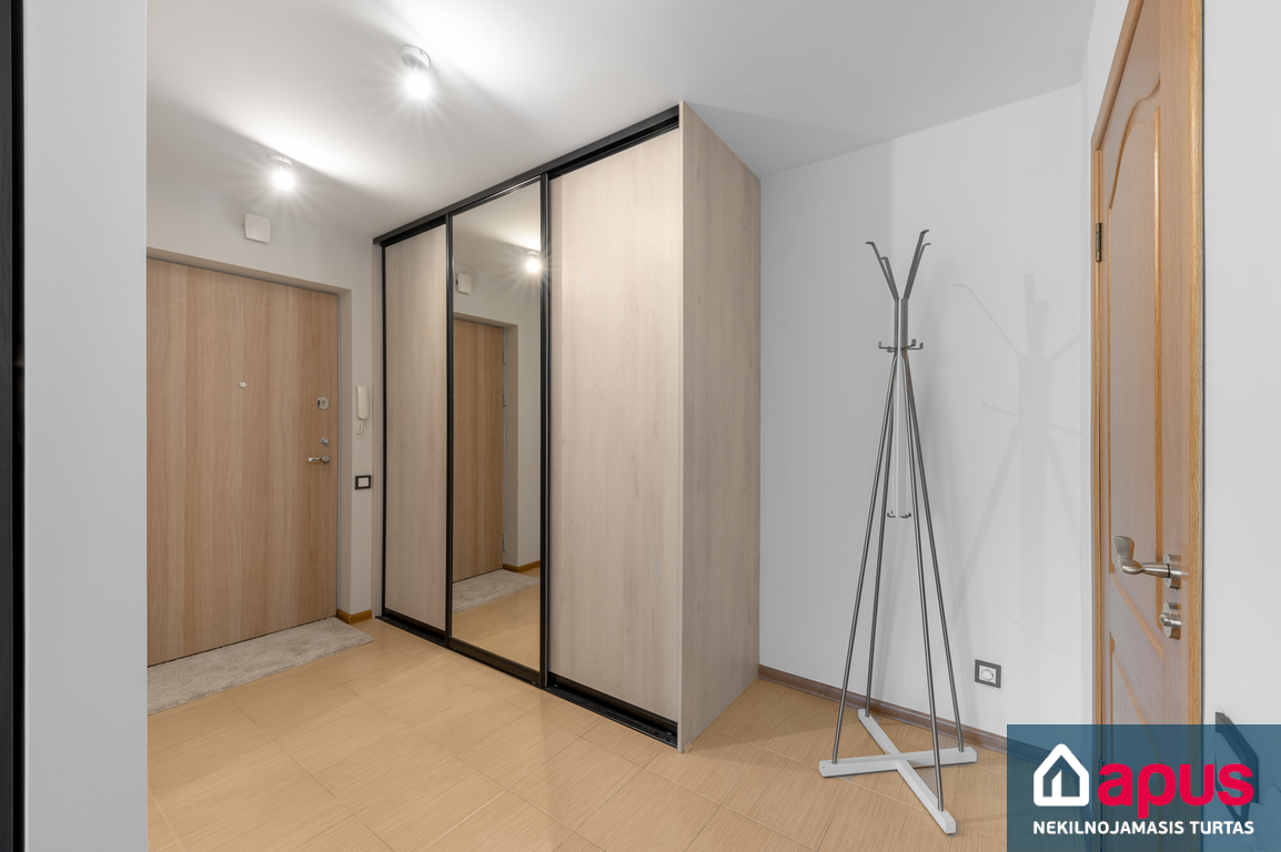 - koridoriuje ir miegamajame įrengtos talpios sieninės spintos;