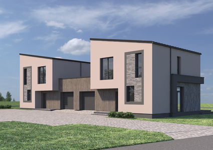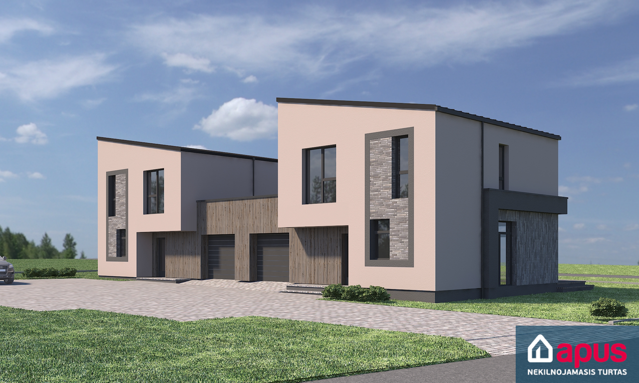 • Dvibučiai namai blokuoti garažais arba sandėliukais – neturi bendros sienos tarp kambarių.