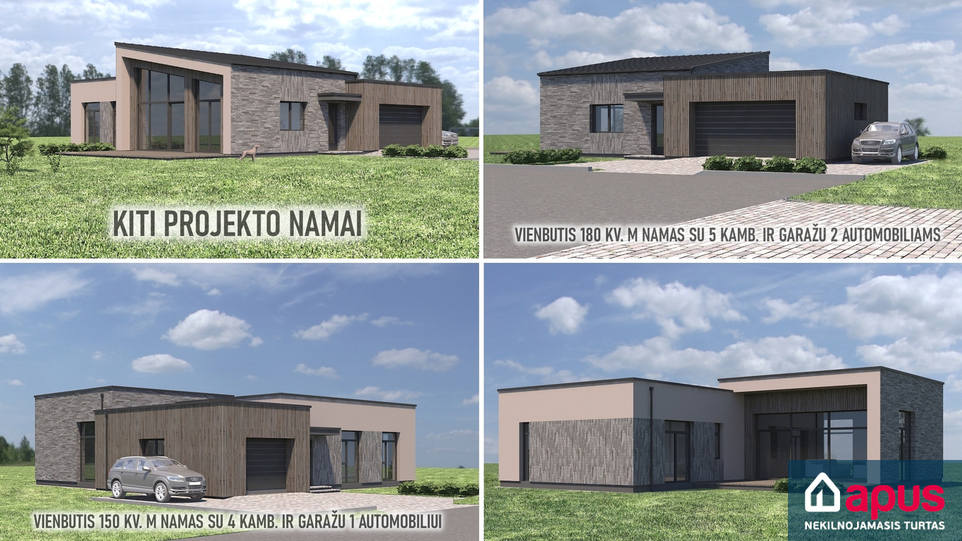 • Projekte siūlomi 132-180 kv. m, 1 ir 2 aukštų vienbučiai ir dvibučiai gyvenamieji namai (5 skirtingi projektai).