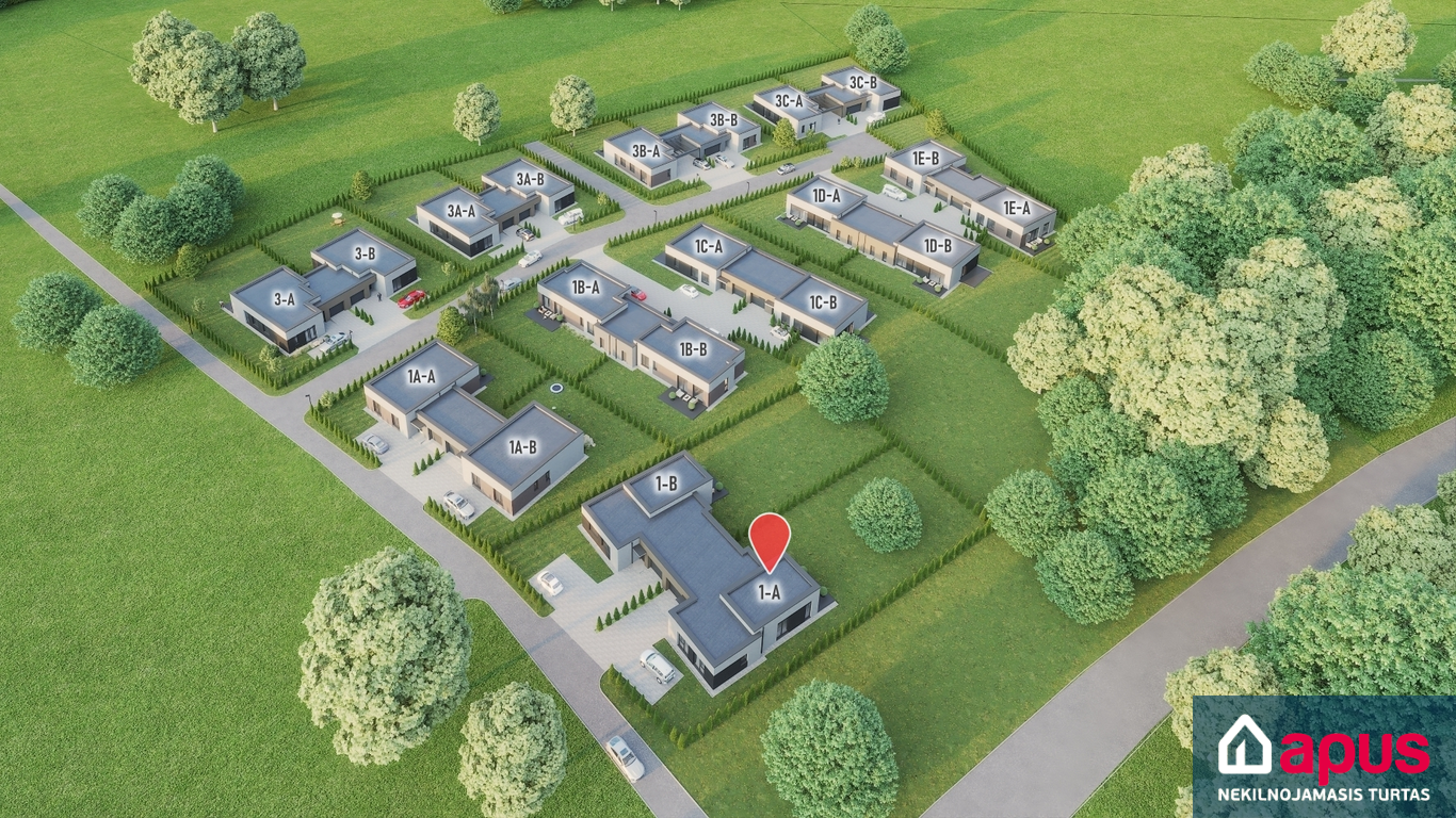 • Dalis namų ribojasi su nuosavu mišku, namai (butai) sujungti tik garažais arba sandėliukais.