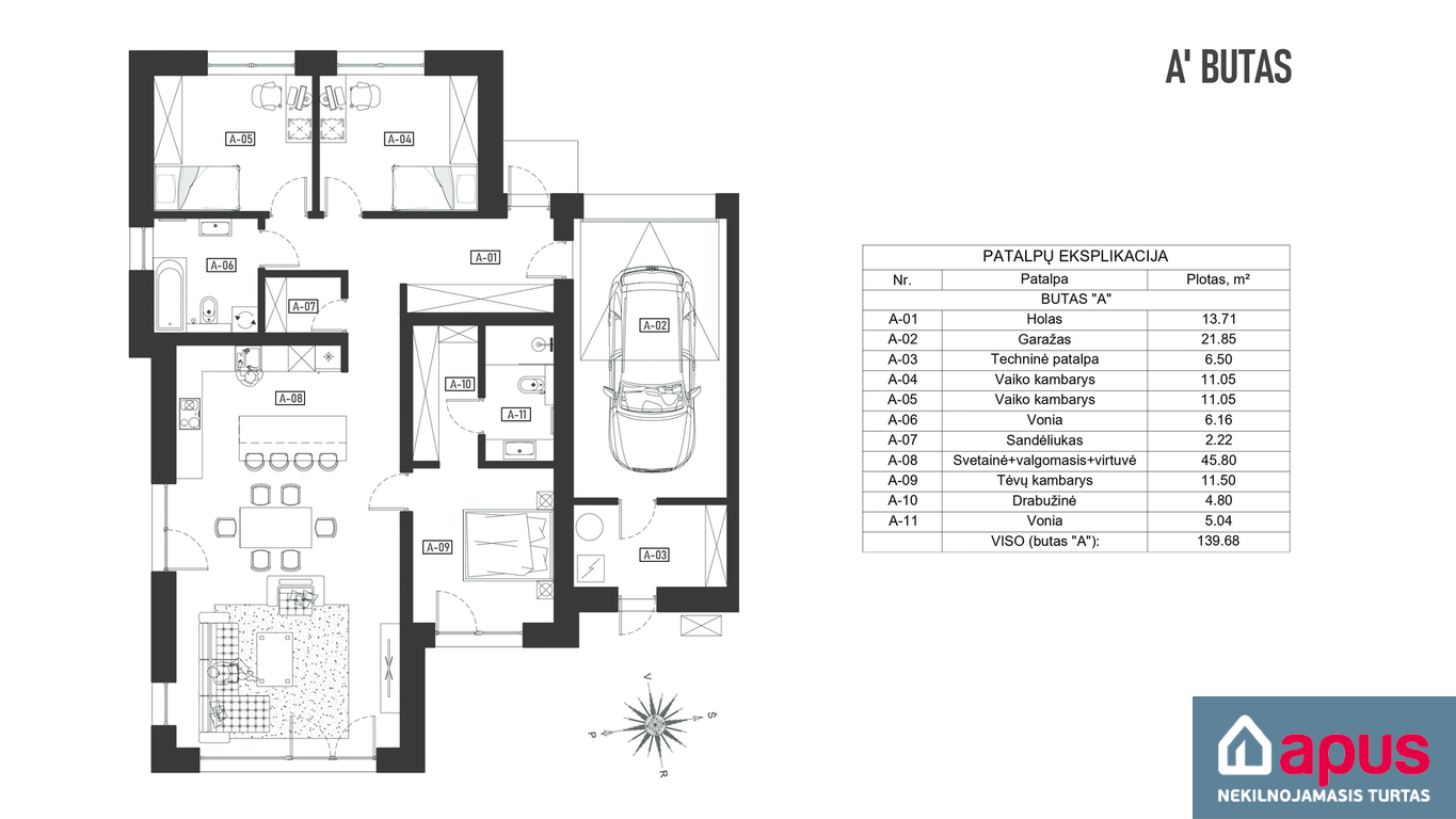 • Vėdinimas: numatytas priverstinis ir pro pravirus langus. Ortakiai ir rekuperatorius įrengiami atskiru susitarimu.