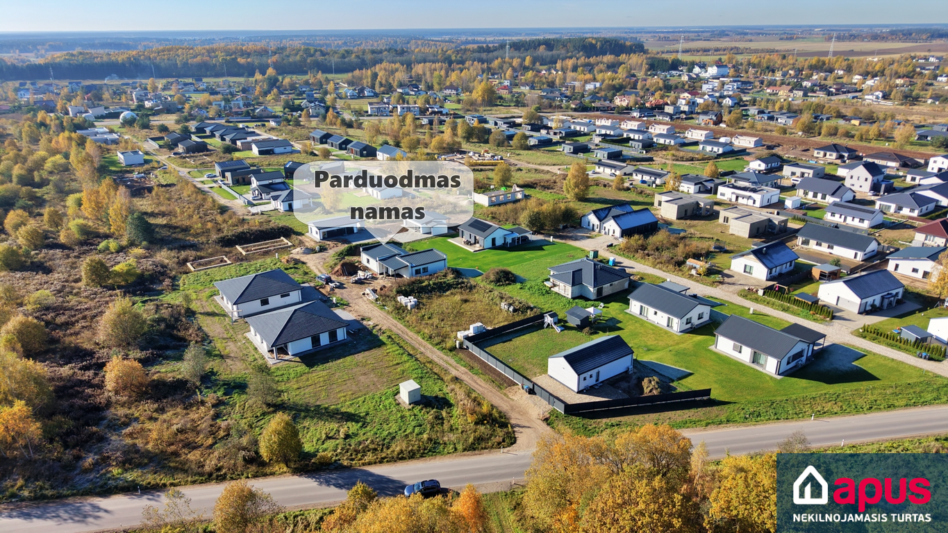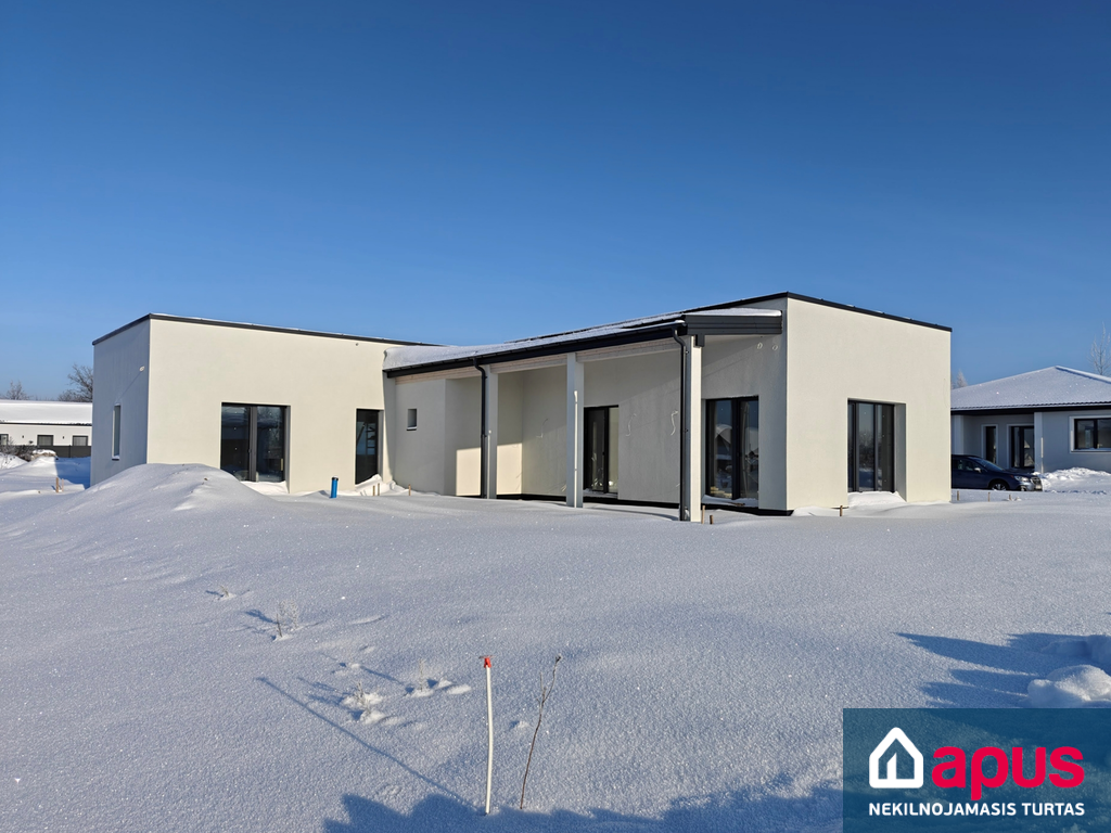Vieno aukšto, 4 kambarių, 120 kv. m namas. Svetainė su valgomuoju ir virtuve (39 kv. m), 3 miegamieji kambariai (12,8-13,6 kv. m), du san. mazgai (6 ir 2 kv. m), katilinė, drabužinė.
