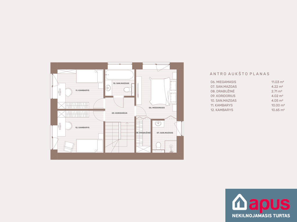 • 3 san. mazgai, vienas jų su vonia, antras su dušu - patogu tiek šeimai, tiek svečiams.
