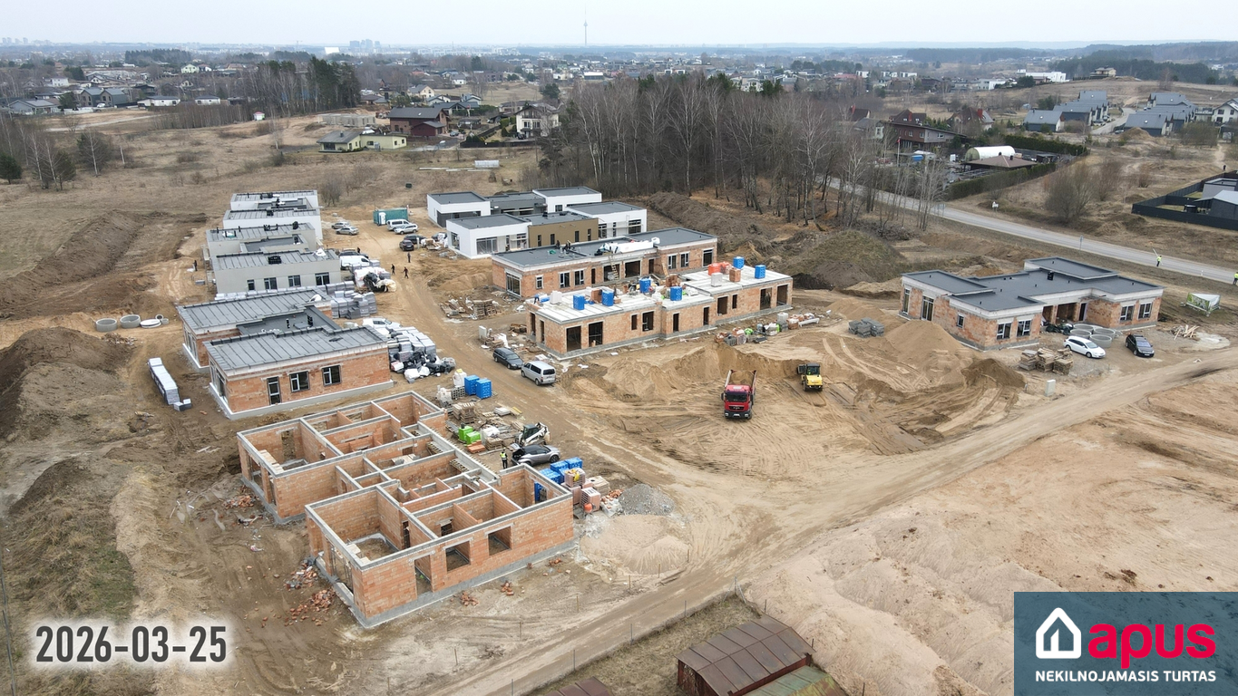 • Dalis namų ribojasi su nuosavu mišku, namai (butai) sujungti tik garažais arba sandėliukais.