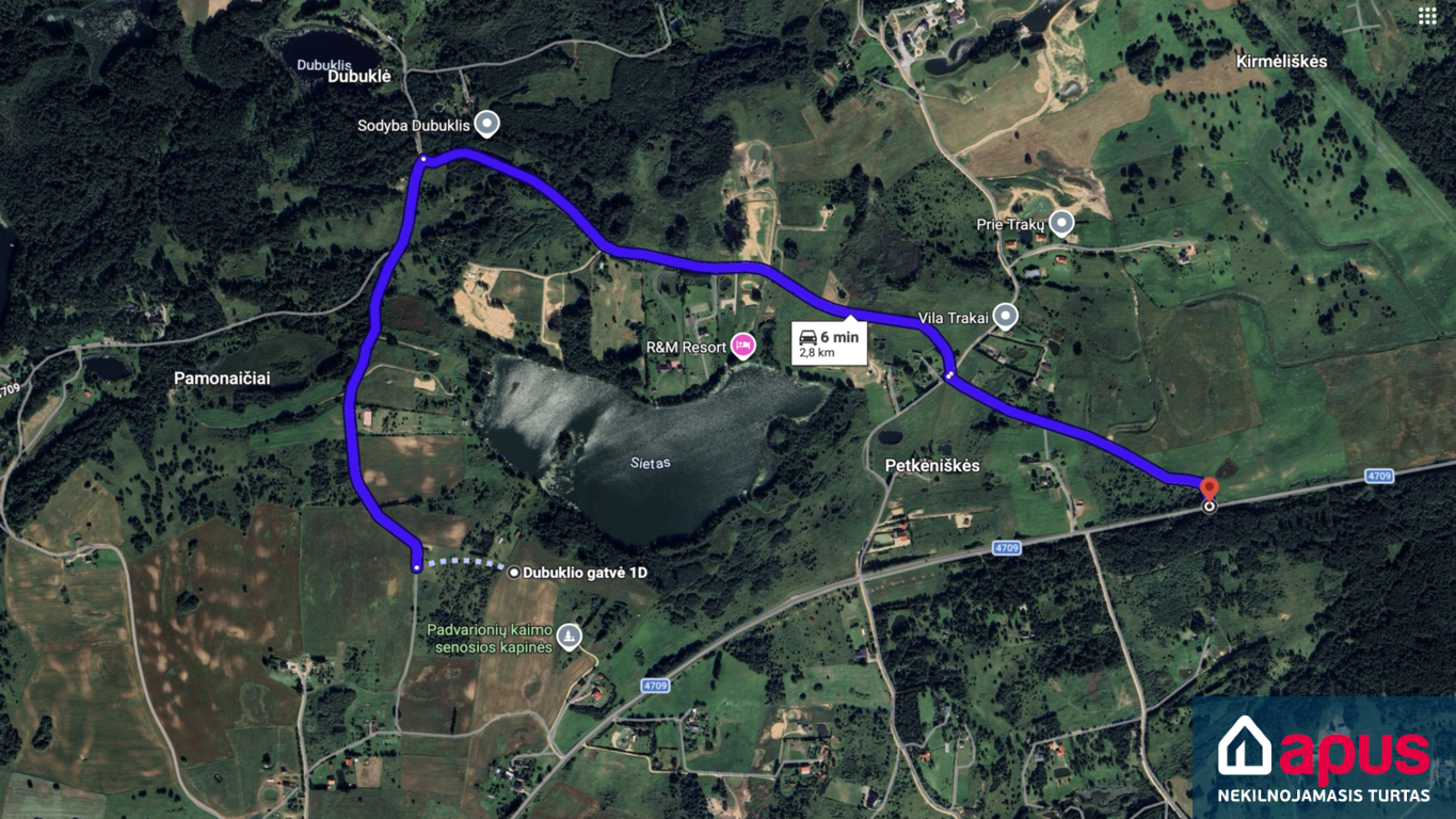 • Iki asfaltuoto kelio apie 1 kilometras.